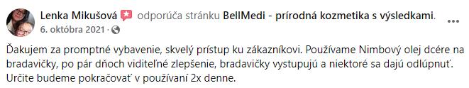 Nasz najlepiej sprzedający się produkt – organiczny olejek nimbowy na brodawki – zbiera wyłącznie pozytywne recenzjena naszej stronie na Facebooku . Setki zadowolonych klientów napisało do nas recenzję organicznego oleju nimba, w tym krótką historię o tym, jak pomógł im w usuwaniu brodawek, kurzajek, plam starczych lub suchej skóry.