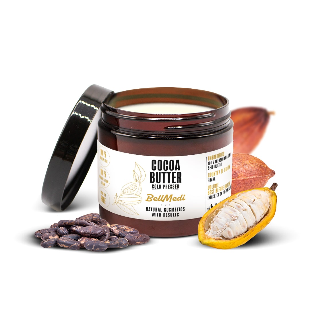 Masło kakaowe zapewnia skórze intensywne odżywienie, głębokie nawilżenie i pomaga przywrócić jej elastyczność oraz miękkość.